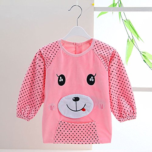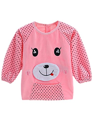 エプロン 子供 スモック 子供エプロン キッズ 男の子 女の子 ビブ 洗い替え 子供服 お食事用 防水 汚れ対策 クマ ピンク