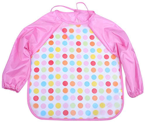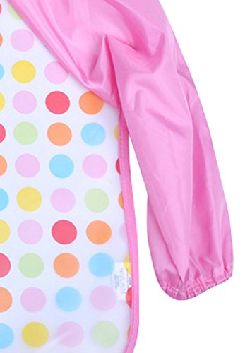 超可愛い お食事用 エプロン 長袖 ベビー用 子供用 幼児用 スモック ビブ 防水 絵画 防汚 幼稚園 保育園 ピンク 水玉