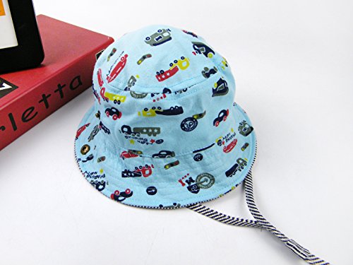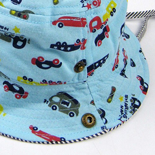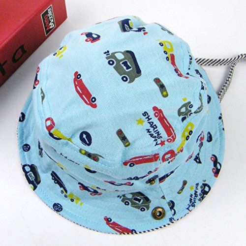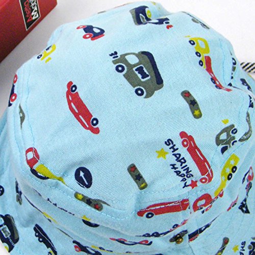 女の子ハット 子供 紫外線対策 女の子帽子 あご紐 ベビー 車柄 赤ちゃんハット コットン ハット 通園 日よけ 紫外線 スカイブルー