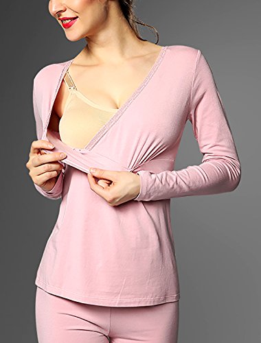 FEOYA 授乳服 妊婦 パジャマ ルームウェア セット 前開き 長袖 便利 無地 マタニティ キツクナイ 柔らかい エレガント 通気性が優れる スレンダー ウェスト調節 通気性が優れる 肌に刺激しない ファッション 静電気防止 弾力富む ピンク XXL