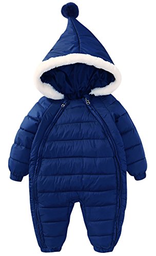 FEOYA カバーオール ダウン 新生児 ジャンプスーツロンパース 出産祝い ベビー 幼児用 防寒着 赤ちゃん 冬 子供服 無地 ネイビー 90cm