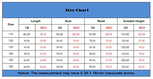 130cm→着丈:54cm 胸囲:85cm ウェスト:83cm/ 140cm→着丈:58cm 胸囲:90cm ウェスト:88cm/ 150cm→着丈:62cm 胸囲:95cm ウェスト:93cm/ 160cm→着丈:66cm 胸囲:100cm ウェスト:100cm/ - [耐光性]お日様の光で楽しく遊んでも、服の光沢と色は変化しづらいです。