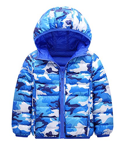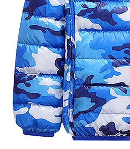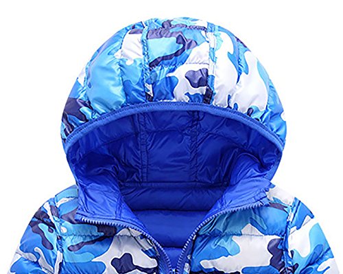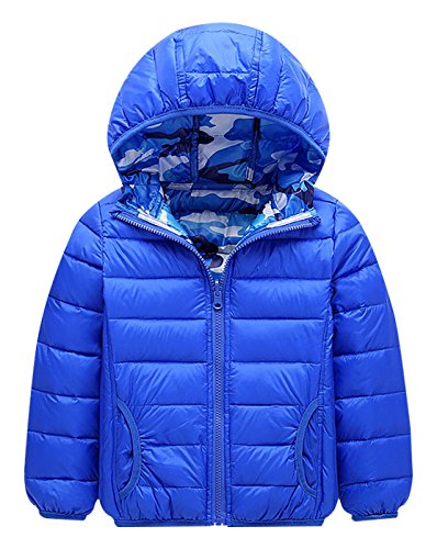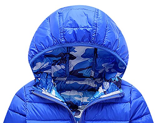 FEOYA コート 子供服 キッズ 男女兼用 無地 子供綿服 ジャケット ジャンパー フード付き ダクロン 軽い 暖かい 長持ち ファスナー開閉 便利 リバーシブル 両面着れる服 迷彩デザイン ファッション ブルー 120