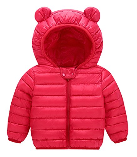 FEOYA コート 子供服 キッズコート 女の子 男の子 暖かい 保温 長持ち 丁寧な縫い目 クマ耳付き 可愛い 新着 洗いやすい レッド 100