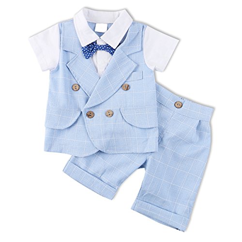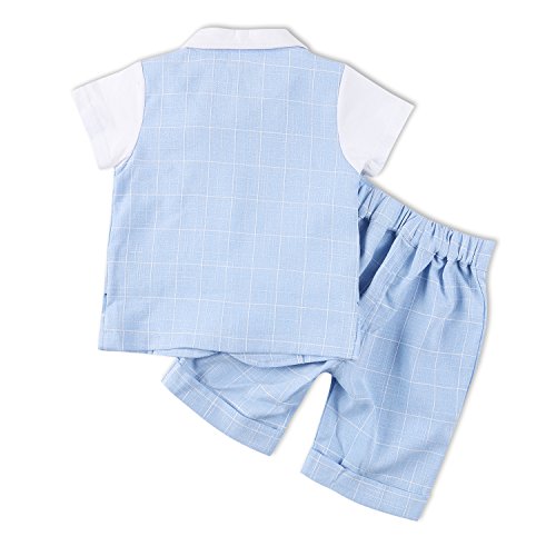 Baby Boy Outfit、2個幼児用半袖Clothes Set With Plaidジャケット&パンツ カラー: ブルー