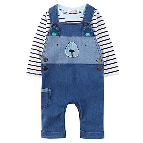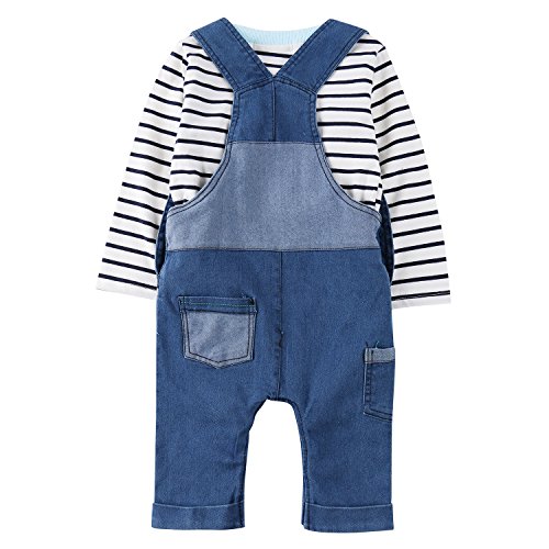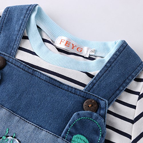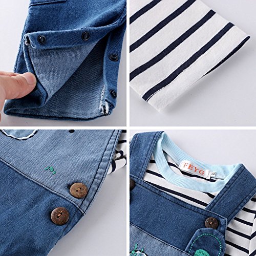 ベビー 長袖 Tシャツ サスペンダー ジーンズ セットアップ ベビー服 男女兼用 キッズ ロンパース 子供 オーバーオール (100)