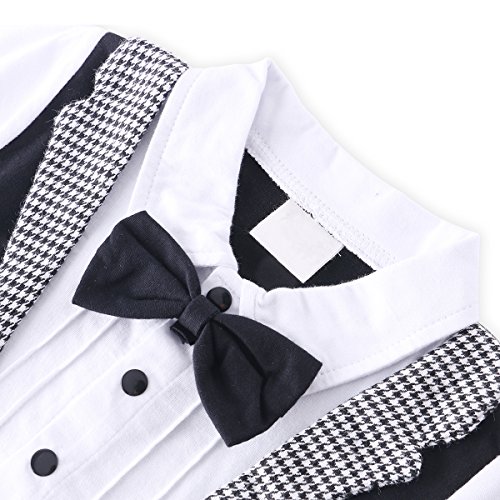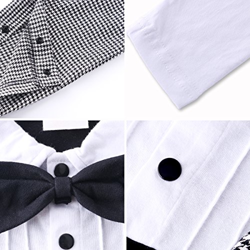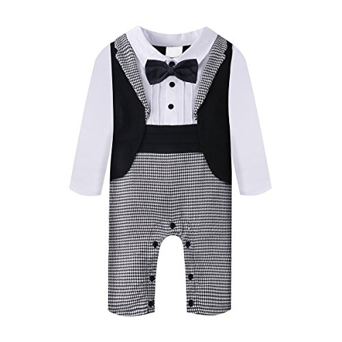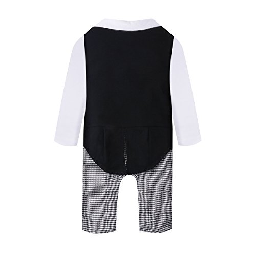 ベビー ロンパース 男の子 タキシード フォーマル スーツ風 長袖 カバーオール 蝶ネクタイ付 (80, ブラック)