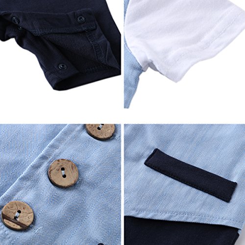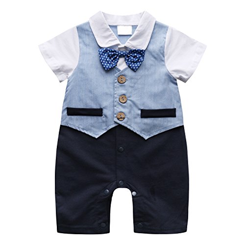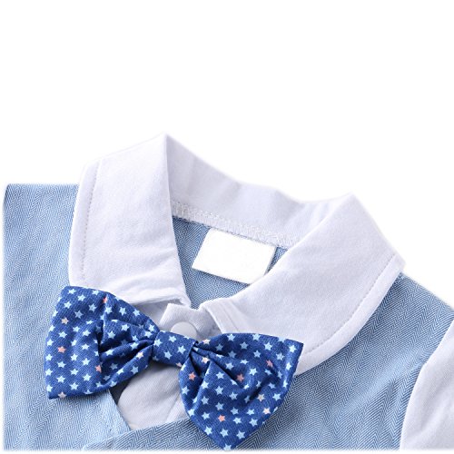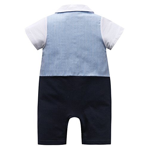 FEYG ベビー フォーマル カバーオール 赤ちゃん セレモニー ロンパース 男の子 タキシード スーツ風 半袖 結婚式服 蝶ネクタイ付 (90, ブルー)