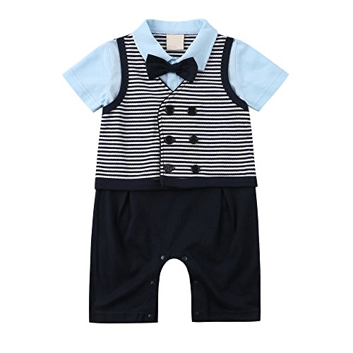 FEYG ベビー服 男の子 フォーマル カバーオール 赤ちゃん ロンパース 紳士風 出産祝い 結婚式 出産祝い 写真撮影 (95, ブルー)