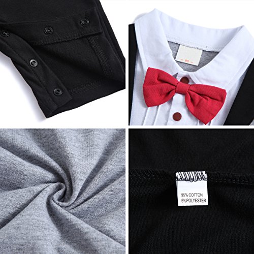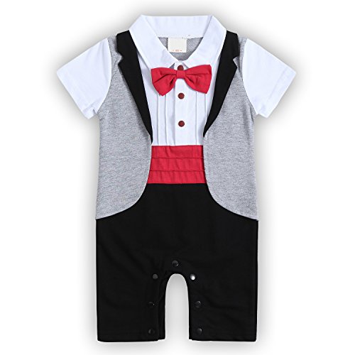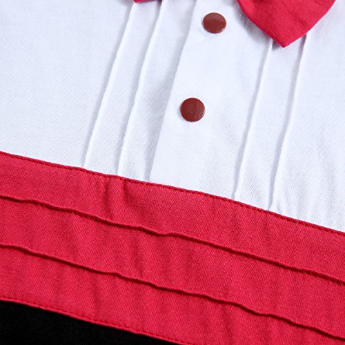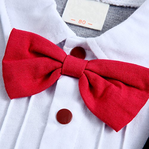 ベビー ロンパース 男の子 タキシード フォーマル スーツ風 半袖 カバーオール 蝶ネクタイ付 (95, 半袖赤)