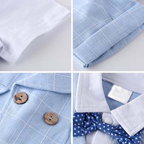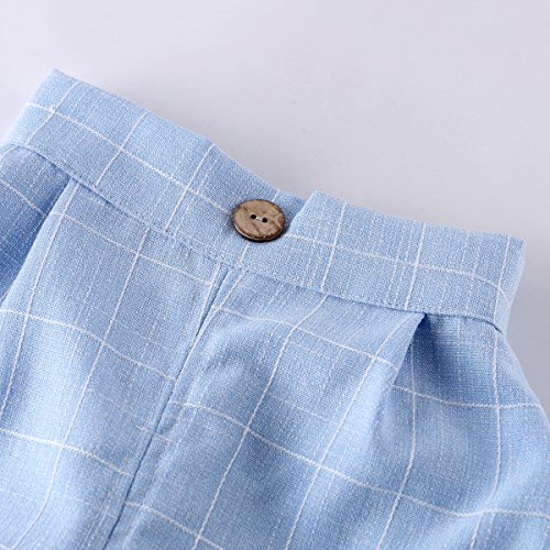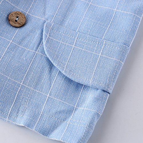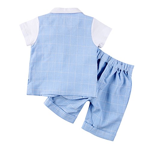 ベビー ボーイズ 半袖 フォーマル スーツ 男の子 チェック柄 上下 2点 セット ネクタイ ベスト 子供服 七五三 結婚式 発表会 (110, ブルー)