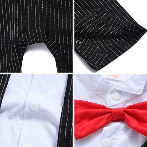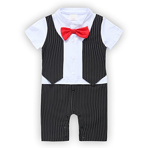 ベビー ロンパース 男の子 かわいい フォーマル スーツ 風 カバーオール セレモニー 結婚式服 (80, 黒)