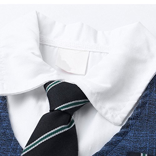 FEYG ベビー フォーマル 男の子 ロンパース ネクタイ 半袖 スーツ風 カバーオール (90, ブルー)