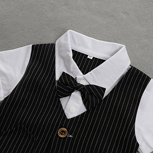ベビー ボーイズ 半袖 フォーマル スーツ 男の子 ベスト風 上下 2点 セット ネクタイ ベスト 子供服 七五三 結婚式 発表会 (80, ブラック)