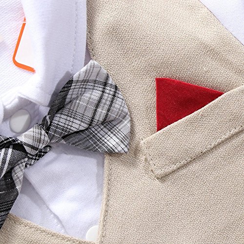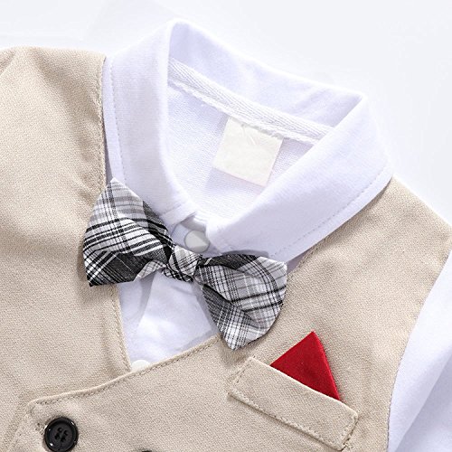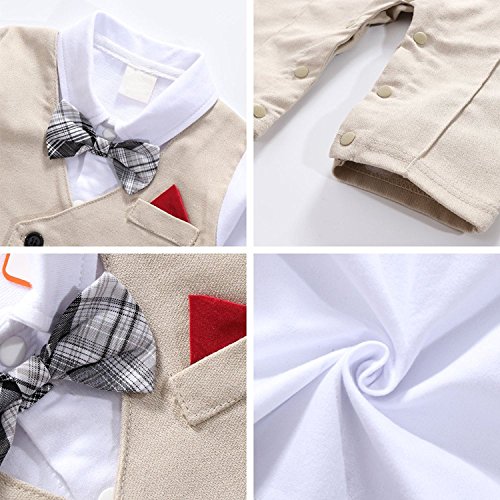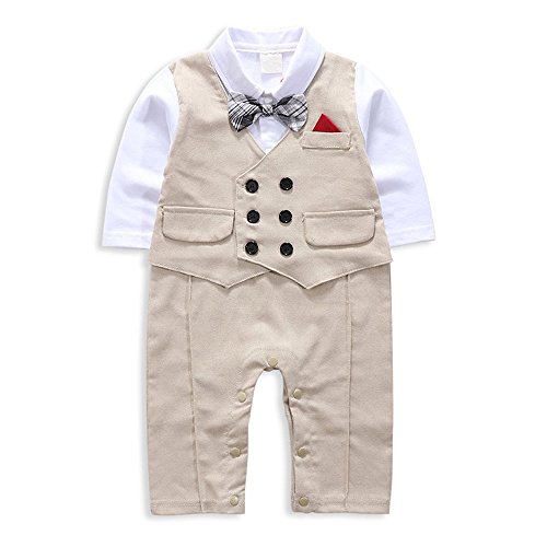 ベビー フォーマル 男の子 子供スーツ ベビー服 ロンパース 結婚式 七五三 卒園式 (90, ベージュ)