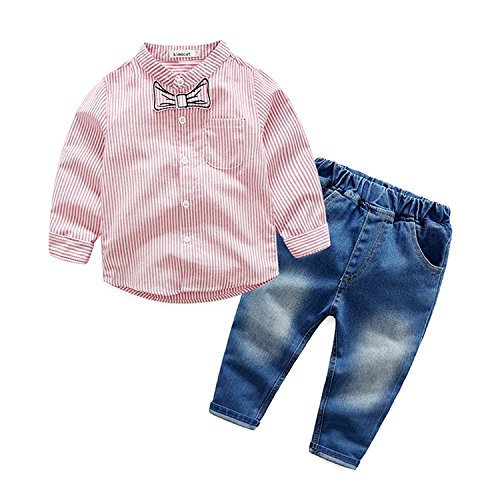 - 2〜8歳の男の子に適している綿のシャツとデニムジーンズのセットです。