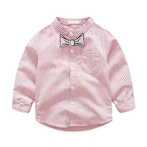 ベビー服 フォーマルスーツ 男の子 シャツ+パンツ 上下セット ストライプ柄 長袖 蝶結び (120cm, ピンク)