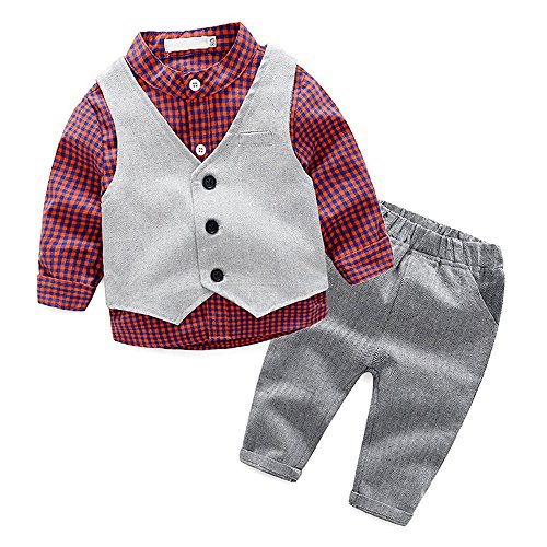 FEYG 男の子 フォーマル セット ベビー お出かけ 服 上下セット シャツ ベスト ズボン 3点セット (80, レッド)