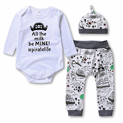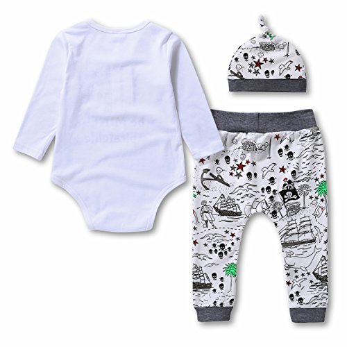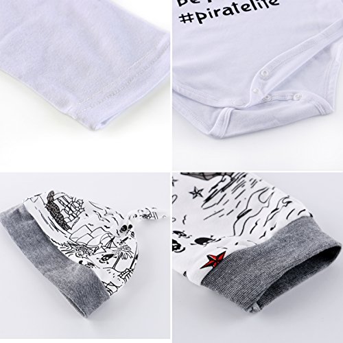 ベビー ロンパース 男の子 可愛い パジャマ 寝間着 ジャンプスーツ+帽子+パンツ 3点セット 赤ちゃん 男女共用 幼児服 カートゥーン (80, ホワイト)