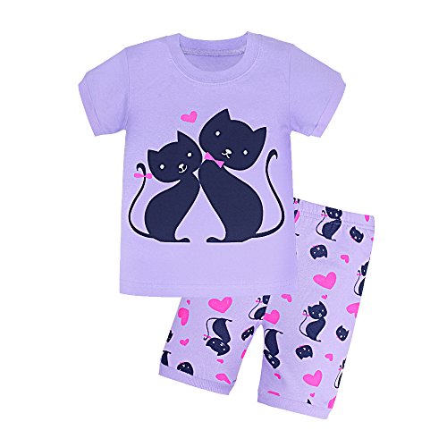 Feyg幼児用ガールズパジャマ、ベビー半袖パジャマセットwith Hearts印刷for 2 – 7歳 カラー: パープル