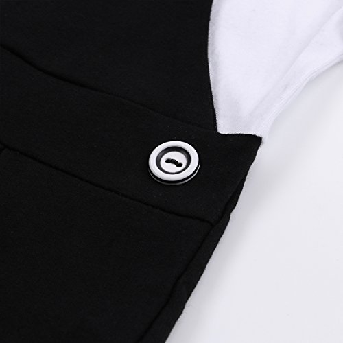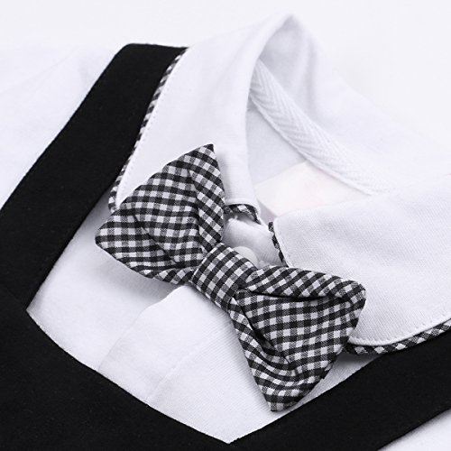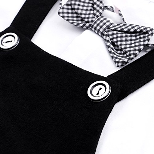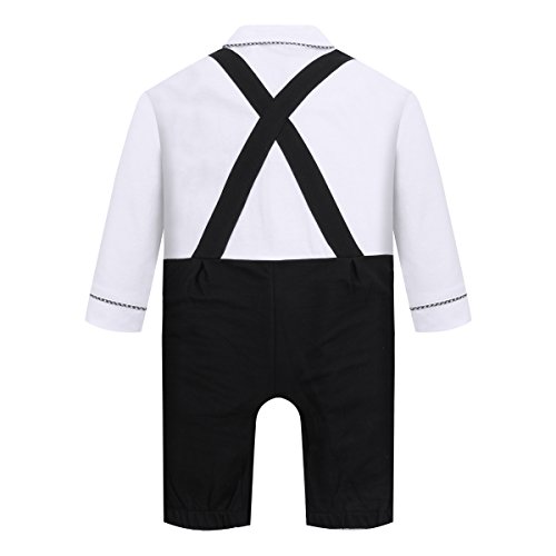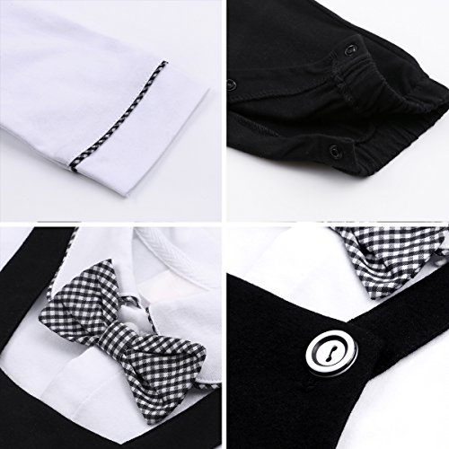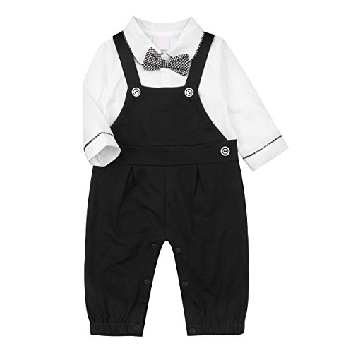 ベビー ロンパース オーバーオール風 蝶ネクタイ キッズ フォーマル 長袖 子供服 男の子 結婚式 七五三 お食い初め 新生児 幼児 出産祝い 撮影 記念日 誕生日 ハーフバースデー (70, ブラック)