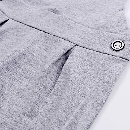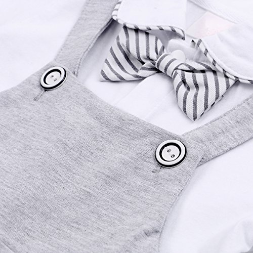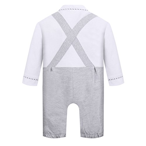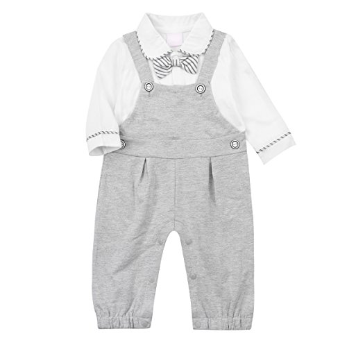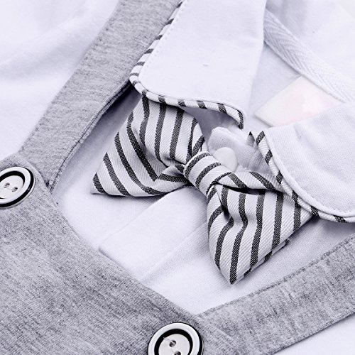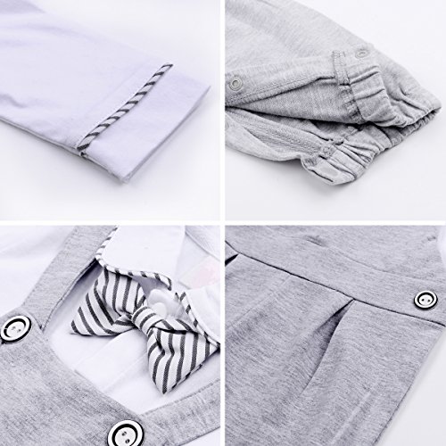 ベビー ロンパース オーバーオール風 蝶ネクタイ キッズ フォーマル 長袖 子供服 男の子 結婚式 七五三 お食い初め 新生児 幼児 出産祝い 撮影 記念日 誕生日 ハーフバースデー (70, グレー)
