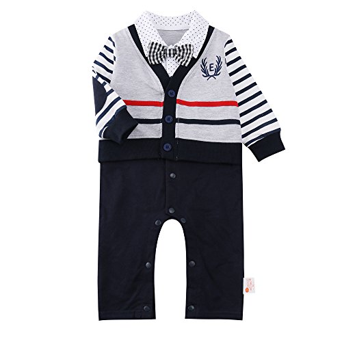ベビー ロンパース 男の子 カバーオール フォーマル パーティー タキシード ジャンプスーツ 蝶ネクタイ付 カレッジ風 紳士風 (70)