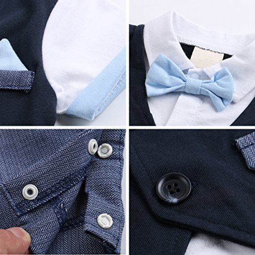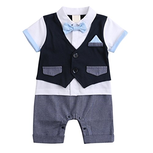 Feygベビー男の子服装、幼児用半袖ロンパースClothing withベスト&キュートボウタイ