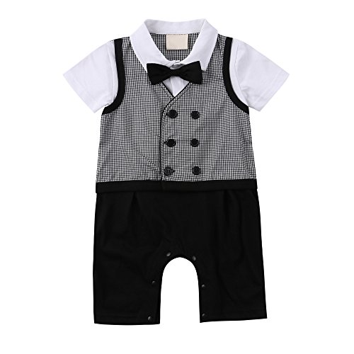 FEYG ベビー服 男の子 フォーマル カバーオール 赤ちゃん ロンパース 紳士風 出産祝い 結婚式 出産祝い 写真撮影 (95, ホワイト)