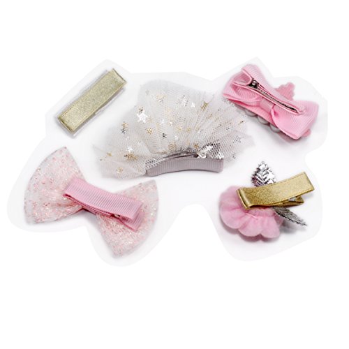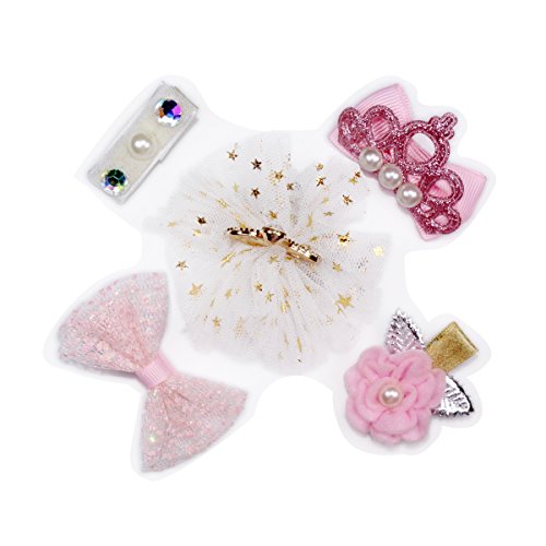5個ヘアピン、キッズ女の子クラウンヘアクリップバレッタフラワー&リボン付き US サイズ: M カラー: ピンク