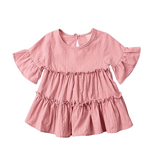 女の子 可愛い プルオーバー ベビー Tシャツ キッズ チュニック トップス 子供服 ゆったり (80cm, ピンク)
