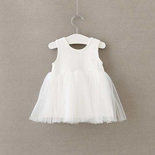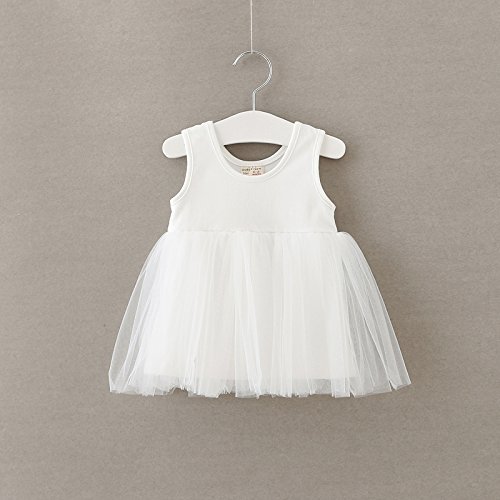 ガールズワンピース 女の子 ノースリーブ ドレス チュニック チュールスカート キッズドレス 子供服 プリンセススカート 子供ドレス (98cm, ホワイト)