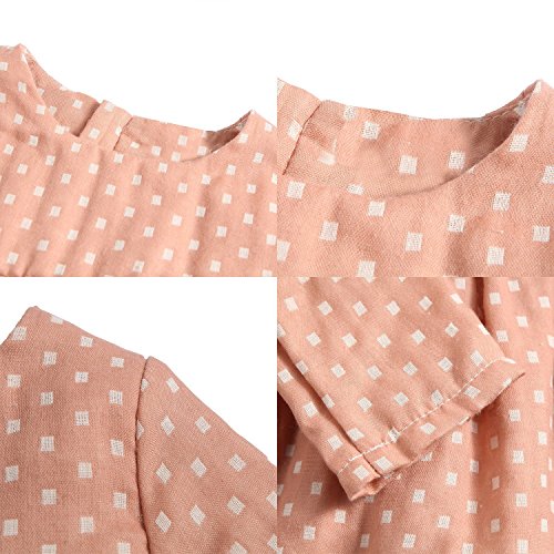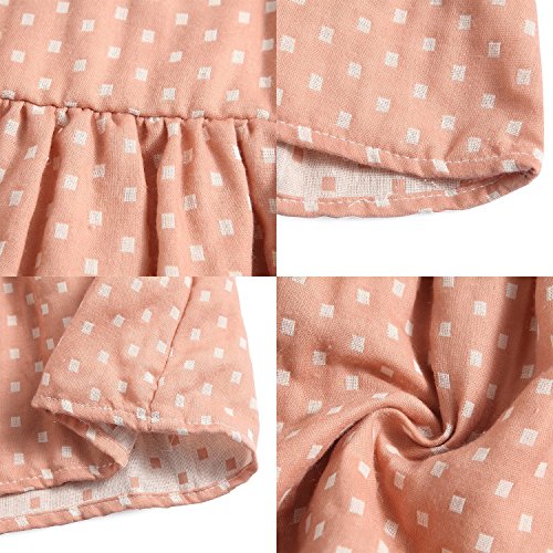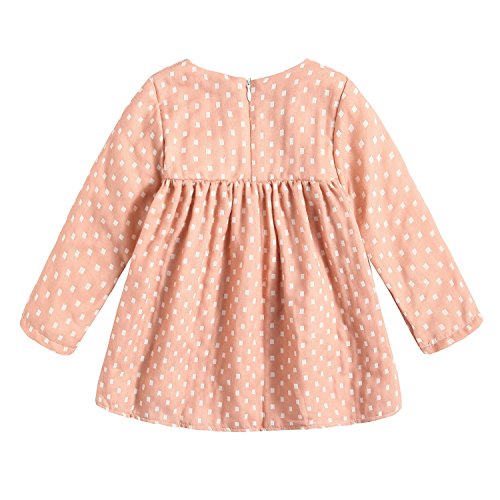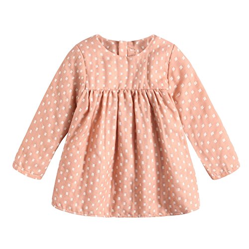 女の子 ワンピース ガールズ ドレス 長袖 ベビー チュニック キッズ 子供服 ベビー服 グリッドパターン 綿麻 チェック柄 かわいい (104, ピンク)