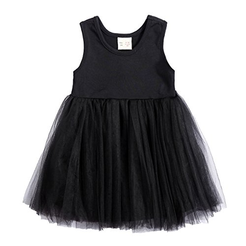 ガールズワンピース 女の子 ノースリーブ ドレス チュニック チュールスカート キッズドレス 子供服 プリンセススカート 子供ドレス (98cm, ブラック)