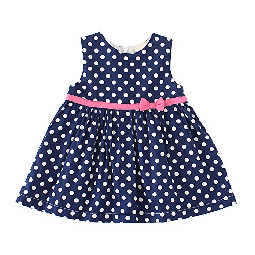 ベビー服 子供 ドレス ベビー ノースリーブ ワンピース 水玉 ドット 柄 女の子 チュニック リボン 蝶結び 付き ガールズ キッズ 可愛い フレア スカート エレガント フォーマル (80cm, 青+白ドット)
