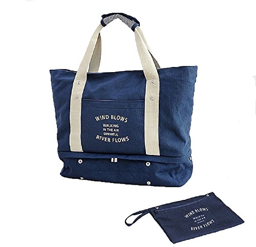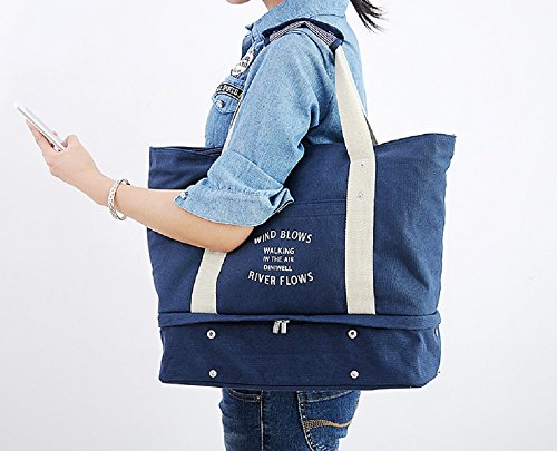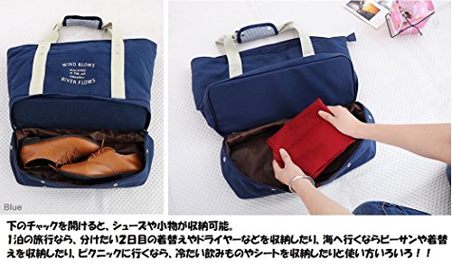 FINDFOUND 大容量 旅行 バッグ トート ショルダー ママ スポーツ シューズ 収納 軽量 防水 2way (ネイビー)