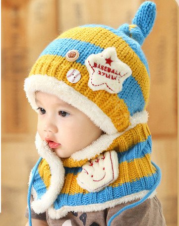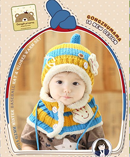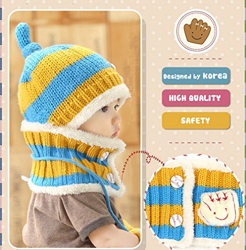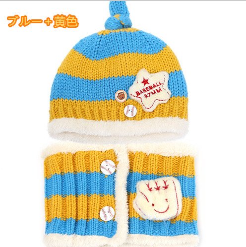 FIRE START 選べる4色 ニット帽子&マフラー セット耳まであったかキャップ ベビー キッズ 子供用 ニットキャップかわいい 赤ちゃんニット帽誕生日 出産祝い 記念写真の衣装にベビー 防寒帽子 (キイロ+水色)