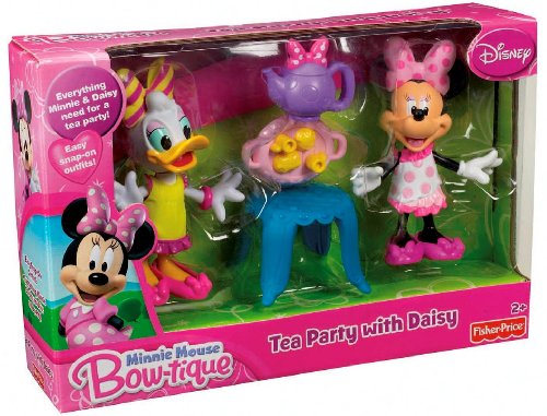 You're invite to Minnie and Daisy's tea party! Includes a Minnie Mouse and Daisy Duck figure with snap-on outfits, and tea party accessories.