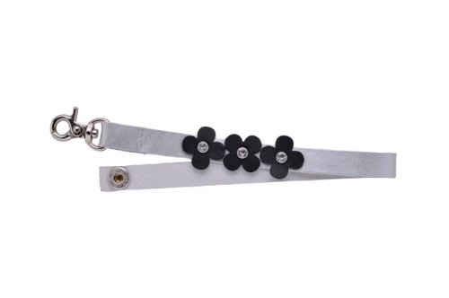 おしりふきケースとポーチにつなげての使用がおすすめです。お花の真ん中にあるスワロフスキーのキラキラがかわいいです。 サイズ:長さ18cm×幅1.3cm 製造国:日本 素材:牛革