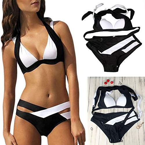 Florataレディースビキニセットバンデージプッシュアップタンキニ水着水着Bathing Beachwear US サイズ: XL カラー: ブラック