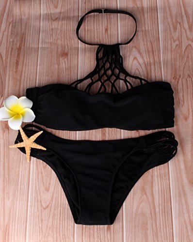 Florataレディースビキニセットセクシーメッシュパッド入りブラタンキニスイムウェア水着ビーチウェア カラー: ブラック