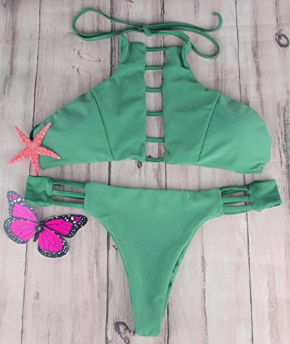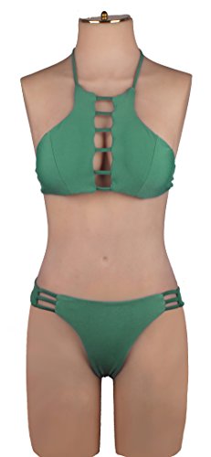 Florataレディースビキニセットホルターネックパッド入りブラタンキニカットアウトスタイルスイムウェアビーチウェア カラー: グリーン