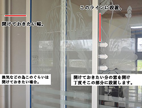 - 【設置方法】:3M製の両面テープで貼り付け ※設置部分に凹凸が無く、引き戸同士の間が10mm以内でしたら、どのような窓の引き戸でも設置可能です。 一つの窓に2~3個くらい設置すると大変強度があります。