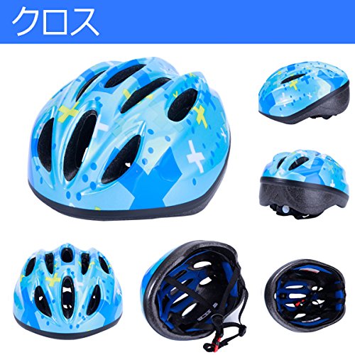 RIHE 軽量 自転車 ヘルメット 子供用 キッズ スケート ボード 安全 サイクリング ジュニア こども用 アジャスター付き (クロス)