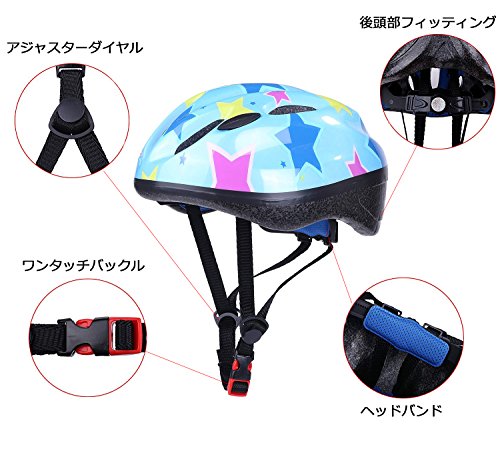 RIHE 軽量 自転車 ヘルメット 子供用 キッズ スケート ボード 安全 サイクリング ジュニア こども用 アジャスター付き (ホシ)