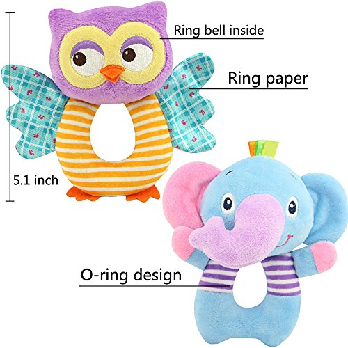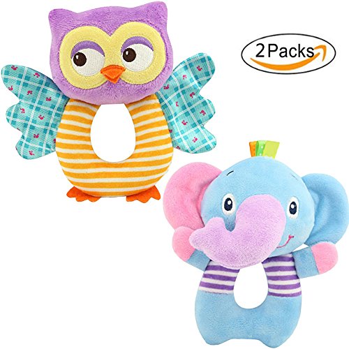 foreast 2個セットベビーガラガラのおもちゃソフト動物象とフクロウ新生児ギフト0 – 3歳男の子/女の子のおもちゃ