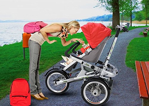 この自転車ベビーカーを折り畳むことができ、トランクに入れることができます。折りたたみ自転車前に、まずベビーシートを削除する必要があります。お買い物を完了したら、戻ってベビーカーを変換し、あなたの食料品の家を漕ぎます!自転車モードでは、ベビーカーは16 "クイックリリースホイールで、背が高く、頑丈な三輪車です。チャイルドシートは、右のあなたのハンドルバーの間にあるので、あなたに沿って転がるようにあなたがあなたの子供とチャットすることができます。