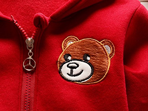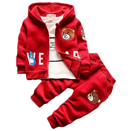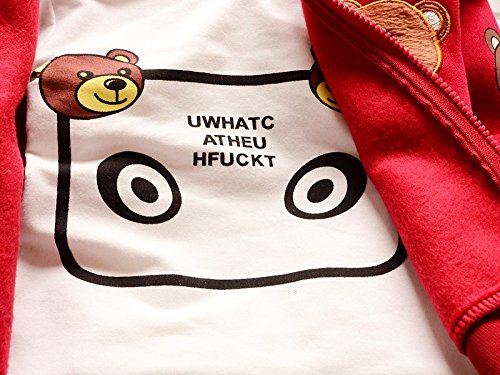 エフティーゾーン(Ftzone)3in1子供服ベビーの女の赤ちゃん男の赤ちゃんの柔らかい綿の上着+上下セット暖かい長袖Tシャツ+ロングパンツセット秋冬防寒保温 (3-9ヶ月, 赤)