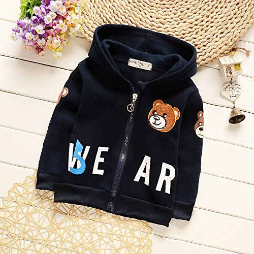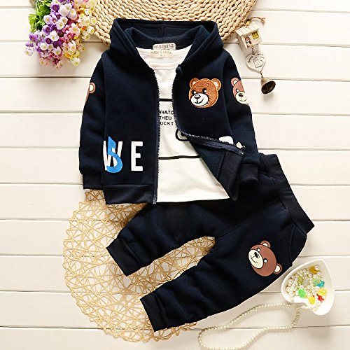 エフティーゾーン(Ftzone)3in1子供服ベビーの女の赤ちゃん男の赤ちゃんの柔らかい綿の上着+上下セット暖かい長袖Tシャツ+ロングパンツセット秋冬防寒保温 (6-12ヶ月, 濃紺)