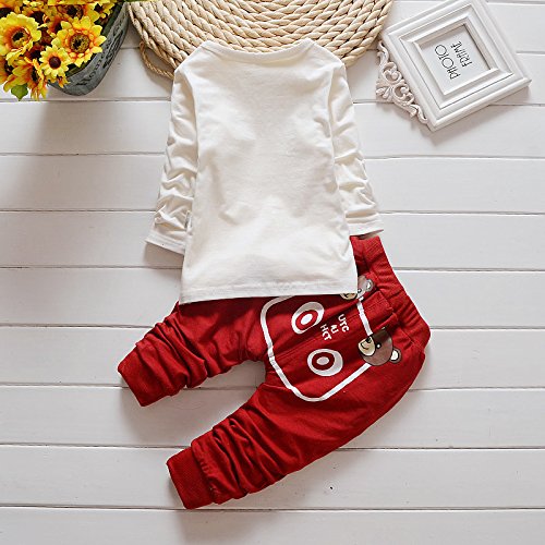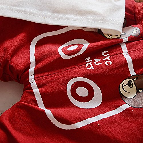 エフティーゾーン(Ftzone)3in1子供服ベビーの女の赤ちゃん男の赤ちゃんの柔らかい綿の上着+上下セット長袖Tシャツ+ロングパンツセット (3-9ヶ月, 赤(春秋))